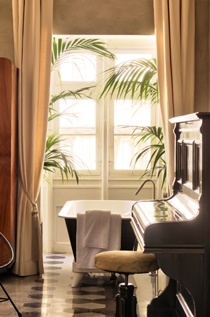 The piano nobile suite is well lit due to its large apertures flooding the room with daylight and is also very well-ventilated due to its soaring ceilings. The room is also equipped with an upright piano which was also restored from the original furniture that adorned the house previous to its conversion.