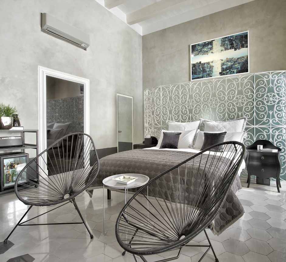 This room also benefits from a Hidrobox bath tub purposely placed in the traditional Maltese balcony, to take advantage of the exclusive view of the Carmelite Church’s architecture with its grand facade standing only five metres across. Moreover, great views of Valletta’s narrow Old Theatre street can be enjoyed from the tall window.