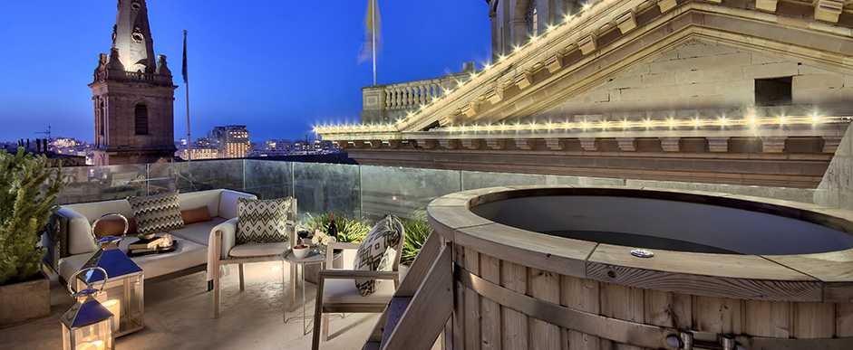 Situated on what was previously the house’s roof, the newly constructed duplex suite enjoys panoramic views from its high perched private terrace and Jacuzzi.