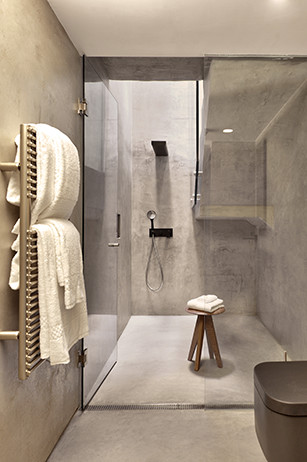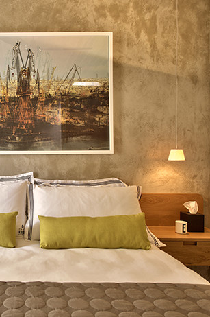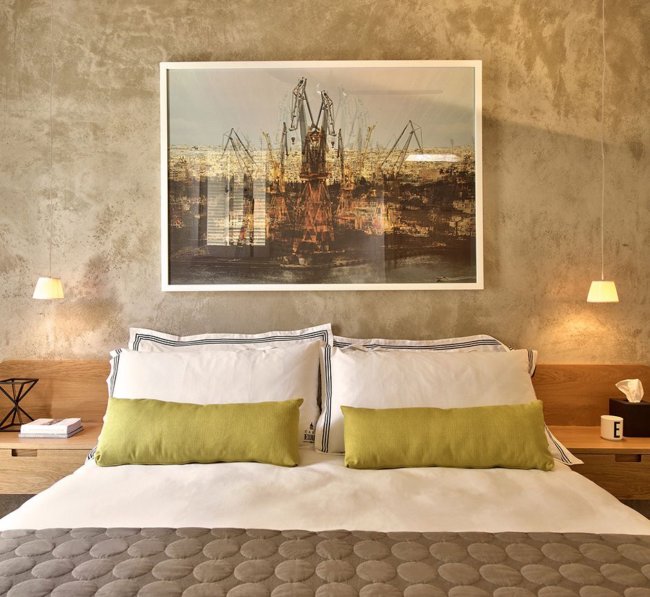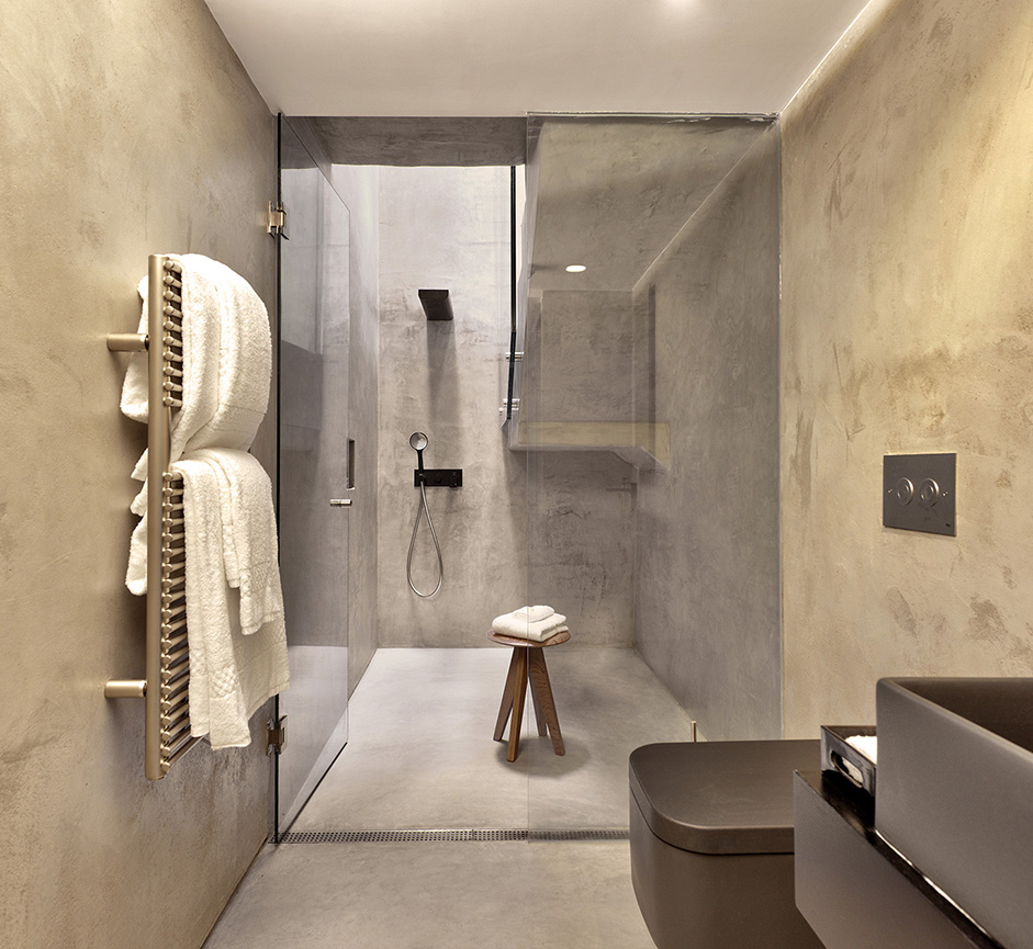 The furniture was once again kept basic and minimal. Upon entering the room a low ceiling area is dedicated to the walk in shower facilities whilst the sleeping area is situated exactly on top of the shower. The showers are equipped with modern Gessi fixtures and a TUBES towel warmer too. Flos Romeo Babe light fittings with a fabric finish offer a softer touch to the suites when compared to the proprietary tadelalkt finish.